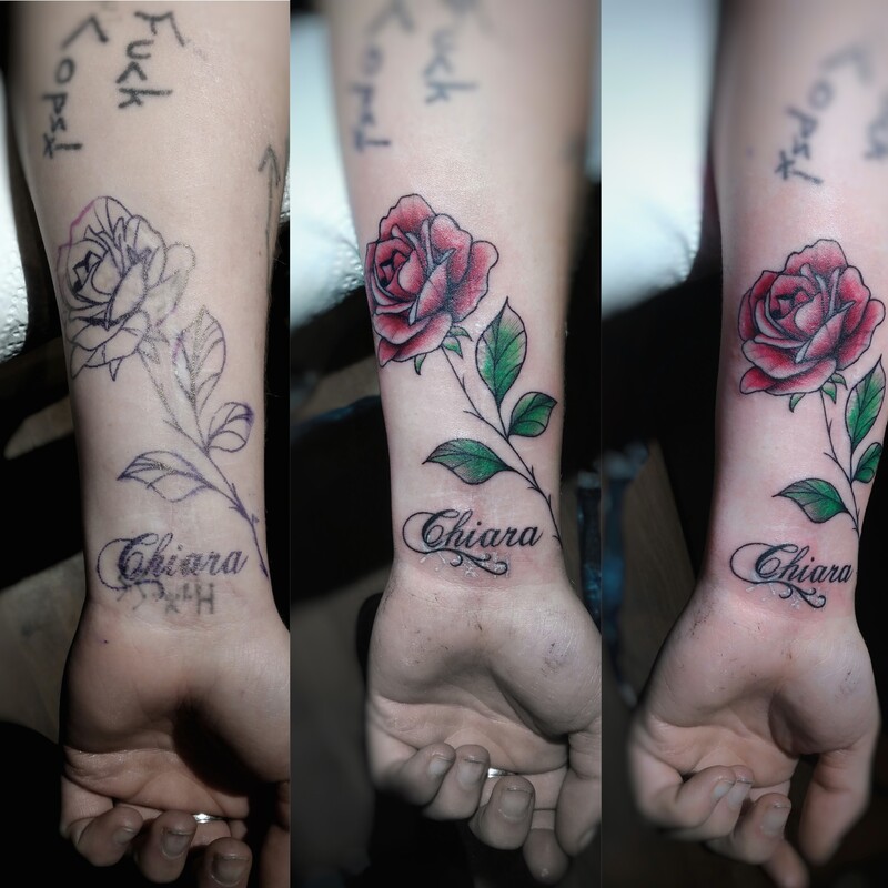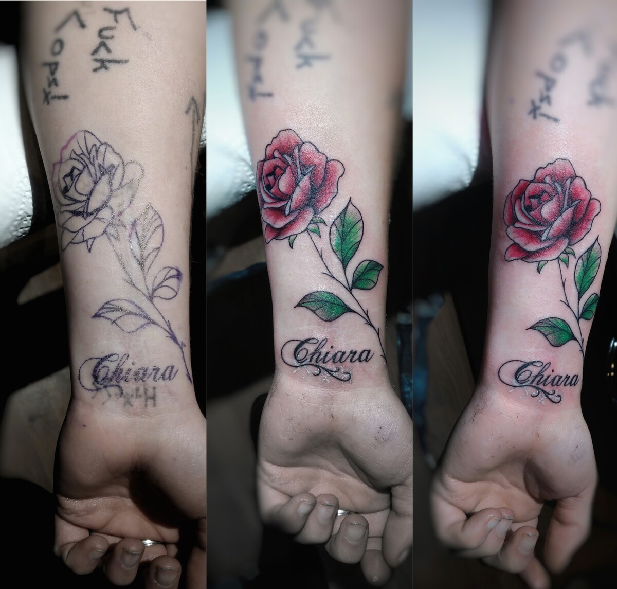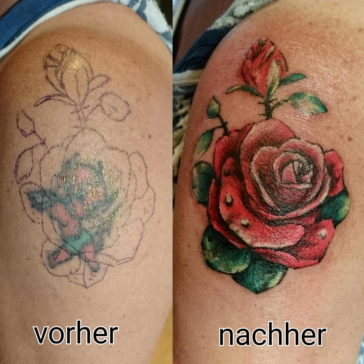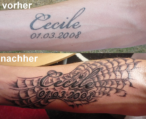 Das bedeutet: oberflächliche Wunden, bei der nur die Epidermis und Teile des Coriums verletzt sind, heilen regenerativ. Bleiben die Basalzellen der Epidermis erhalten, was hier der Fall ist, so wird eine vollständige Regeneration eintreten. Das bedeutet, dass sich die Haut ohne Narbe genau so neu bildet, wie sie vorher war. (Nur mit dem kleinen Unterschied, dass nun plötzlich Farbpigmente in die Haut eingebracht worden sind, die nun das Tattoo bilden.)
