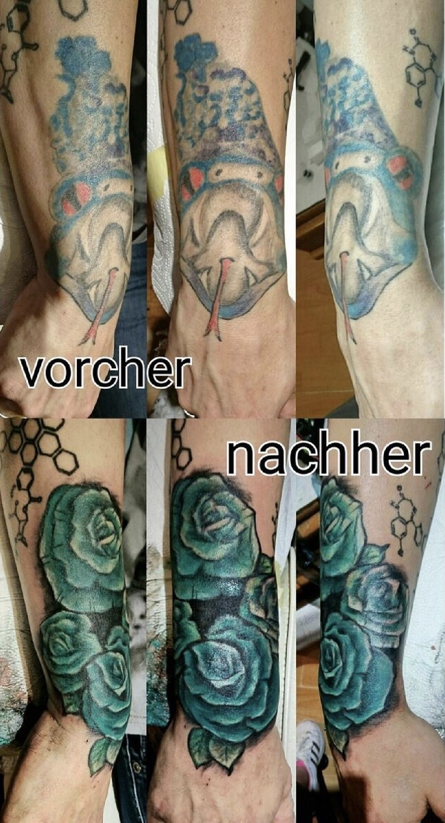Höre bitte nicht auf die vielen Leute, die über Nacht Experten geworden sind und die Anweisungen ohne jegliche Kenntnis geben wollen! Diese schaden meist mehr als sie helfen. Befolge bitte nur die Anweisungen deines Tätowierers, weil uns deine Gesundheit sehr am Herzen liegt! Leider können wir nach dem Verlassen unseres Studios nicht kontrollieren, wie ernst du es mit der Nachbehandlung nimmst. Aus diesem Grund wirst du ganz auf eigene Gefahr tätowiert. Wund- & Heilsalben beinhalten Stoffe, welche für die schnelle Neubildung von Hautzellen verantwortlich sind. Bedenke dabei, du willst doch deine farbigen Hautzellen behalten, oder? Verwende niemals Frischhaltefolie, denn deine Haut hatte durch das Tattoo genug Stress, du musst sie nicht noch im Nachhinein versuchen zu ersticken. Die Haut muss atmen. Nicht nur das, durch die Folie (Wärme und Schweiß) bildet sich ein Nährboden für Bakterien. Die Frischhaltefolie ist eher für totes Fleisch gedacht, nicht für eure lebendige Haut.