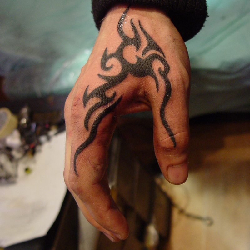 In vielen Kulturen wird das Tätowier Muster mit einer Art kleiner Hacke in die Haut geklopft. Das eigentliche Tätowierwerkzeug besteht aus einem Stab, an dem vorne ein spitzer Gegenstand im rechten Winkel befestigt ist. Bei den Stämmen Borneos sind das Nadeln oder auch Pflanzendorne, auf Samoa finden hier teilweise recht breite, spitz zugeschliffene Kämme aus Schildkrötenpanzern Verwendung. Mittels eines weiteren Stockes wird die kleine Hacke entlang des Tattoo-Musters in die Haut geschlagen.