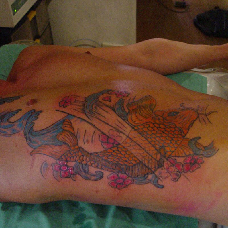 Ist es also völlig unmöglich, dass Tattoos verschwinden? Nicht ganz, denn durch Laser-Bestrahlung ist es möglich, Farbpartikel wieder aus den Zellen zu »sprengen« in die sie zuvor eingelagert waren. Die Zellbruchstücke und die Farbpigmente werden dann durch die Blutbahn sowie durch das Lymphsystem abtransportiert. Die Tätowierung verschwindet somit, in den Lymphknoten bleiben aber - natürlich von außen nicht sichtbar - ein Leben lang Pigmentrückstände nachweisbar. Aus diesem Grund ist es auch nicht ratsam eine Tätowierung im Falle einer (heutzutage sehr seltenen) Allergie gegen bestimmte Tattoo-Farben weglasern zu lassen, denn die Allergie auslösenden Stoffe verbleiben bei dieser Methode im Körper, wo sie weiterhin allergische Beschwerden verursachen können.