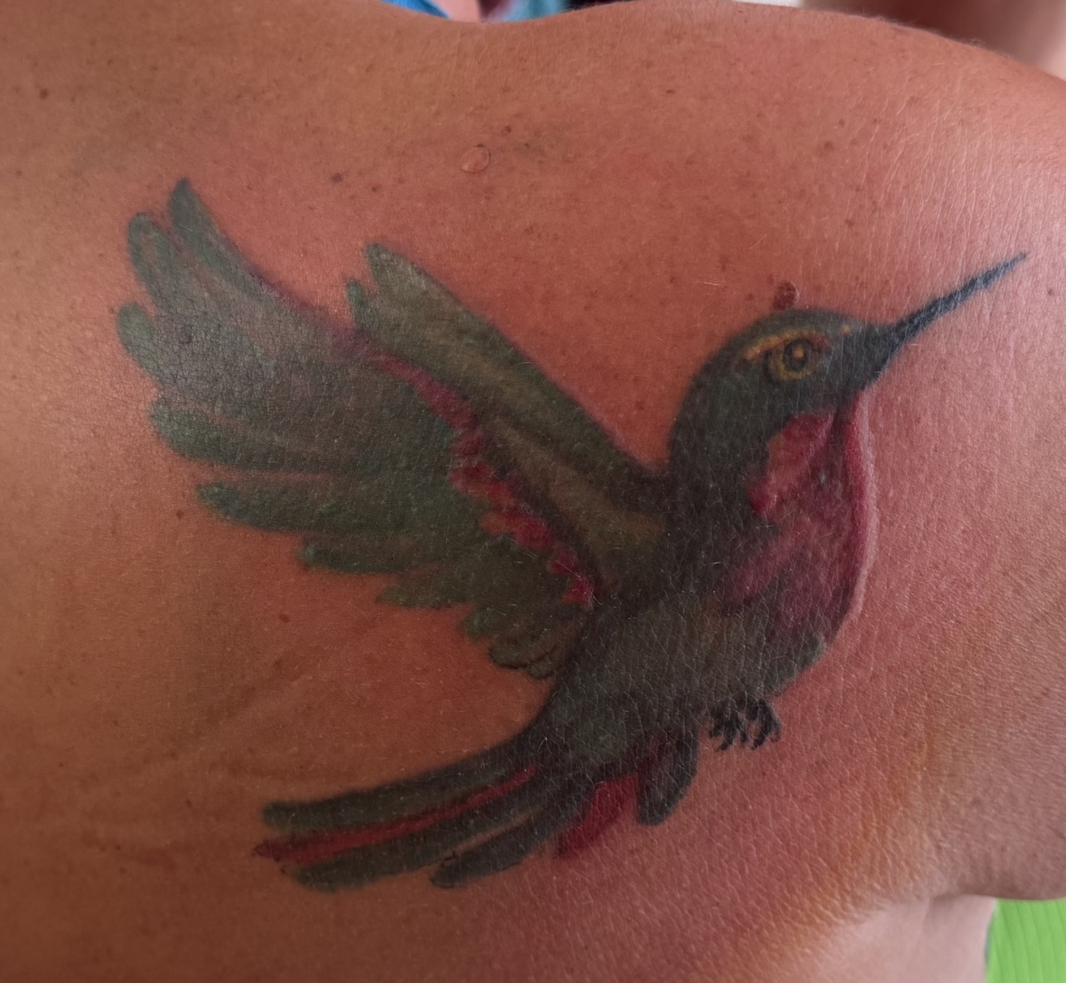 Das bedeutet: oberflächliche Wunden, bei der nur die Epidermis und Teile des Coriums verletzt sind, heilen regenerativ. Bleiben die Basalzellen der Epidermis erhalten, was hier der Fall ist, so wird eine vollständige Regeneration eintreten. Das bedeutet, dass sich die Haut ohne Narbe genau so neu bildet, wie sie vorher war. (Nur mit dem kleinen Unterschied, dass nun plötzlich Farbpigmente in die Haut eingebracht worden sind, die nun das Tattoo bilden.)